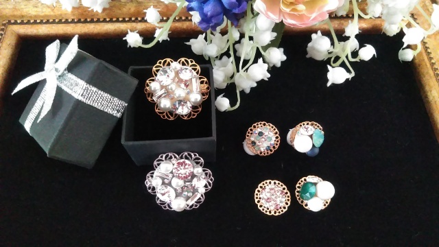 今回は、人気のリリークラスター風のリング、ネックレス、イヤリングの3点セットを作られる方、使いやすいセルクルネックレス、ピアスを作られる方の2名で、一気に揃えて使いたい!もりもりレッスンでした。